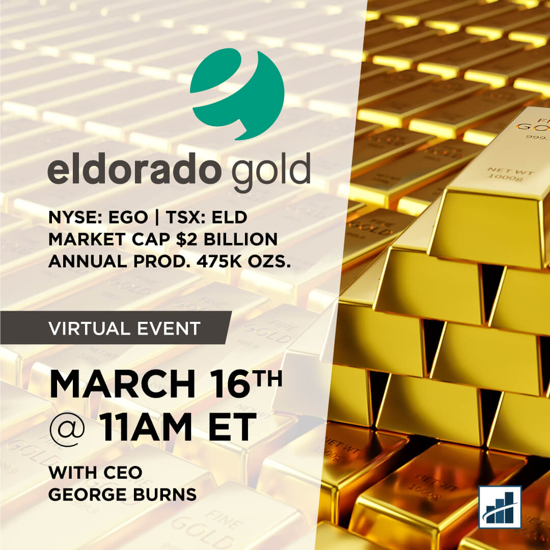 George Burns, President and Chief Executive Officer, Eldorado Gold sits down with James Connor, at Bloor Street Capital for a corporate update and overview of Eldorado's operations and upcoming value drivers. The webinar starts on Wednesday, March 16th at 11am ET.