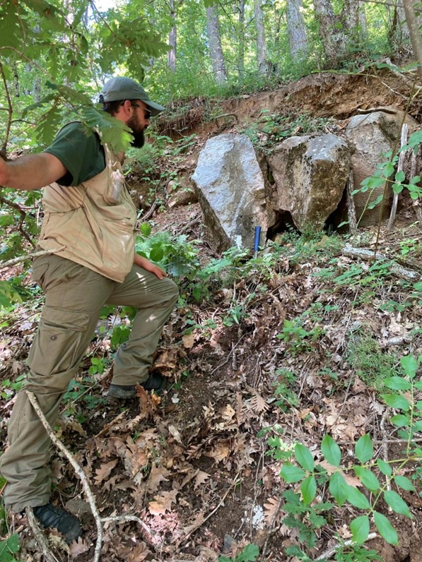 Spyros collecting rock samples from marble outcrops around Olympias deposit for his research.