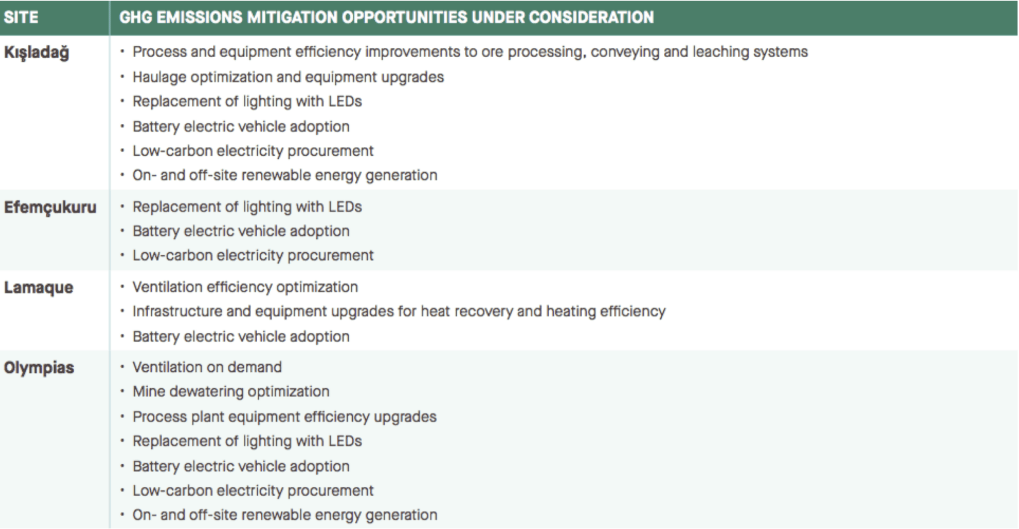 * The specific projects and associated GHG emissions mitigations that constitute the pathway are subject to changes and revisions and should only be considered indicative. Eldorado does not commit to implementing the specific projects listed below in order to achieve its target.